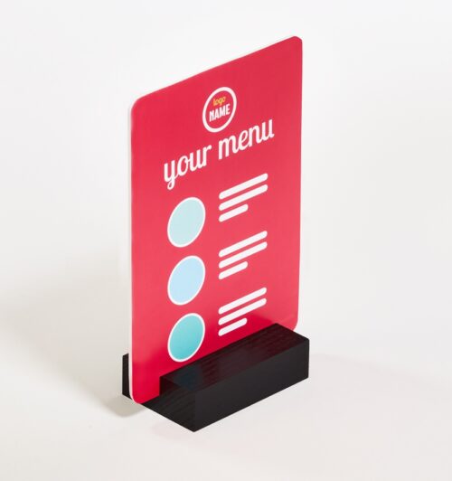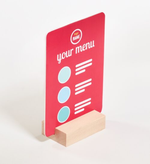 Houten kaarthouders voor het tonen van je menu op het terras of plaats er je kaart in hoe jou gasten kunnen inloggen op de WiFi. Of wil je de bewegwijzering op kantoor doeltreffend neerzetten.