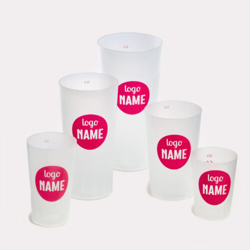 Proost op jouw bedrijf met deze bedrukte plastic bekers en werk tegelijkertijd aan je naamsbekendheid, op welk feestje ze ook van de partij zijn! Wij bedrukken plastic bekers met jouw bedrijfsnaam en/of logo en geven ze een persoonlijke en herkenbare look. Kies uit 7 formaten, en 1 t/m 2 PMS-kleuren (zie hier de lijst met beschikbare kleuren).